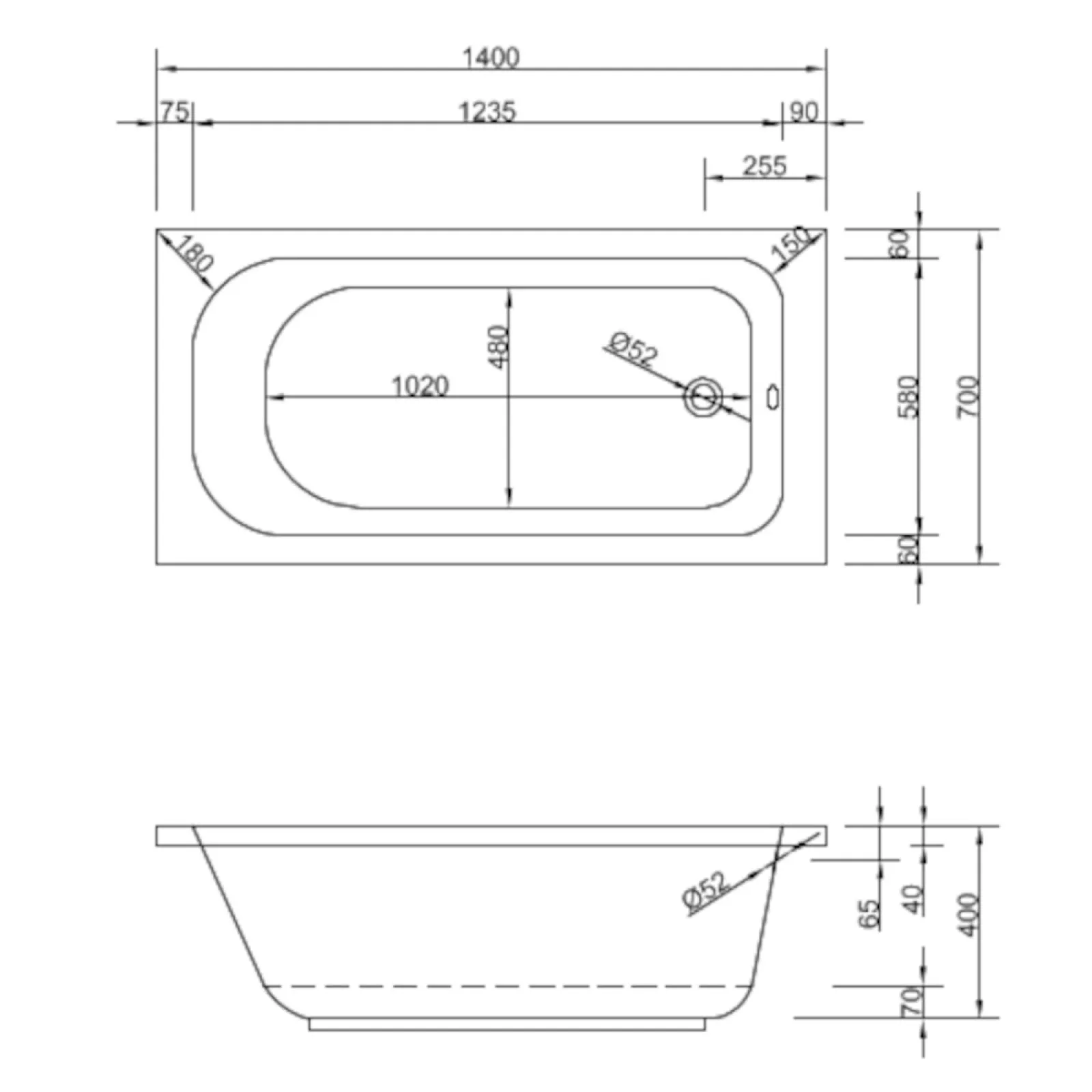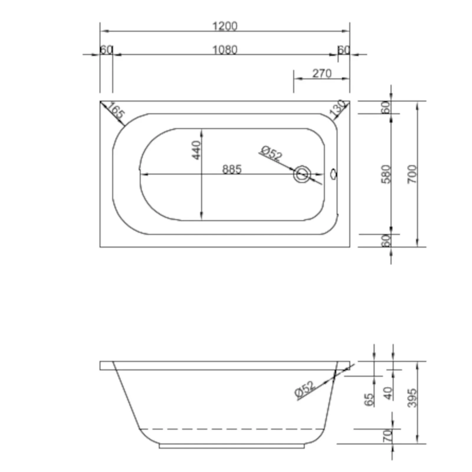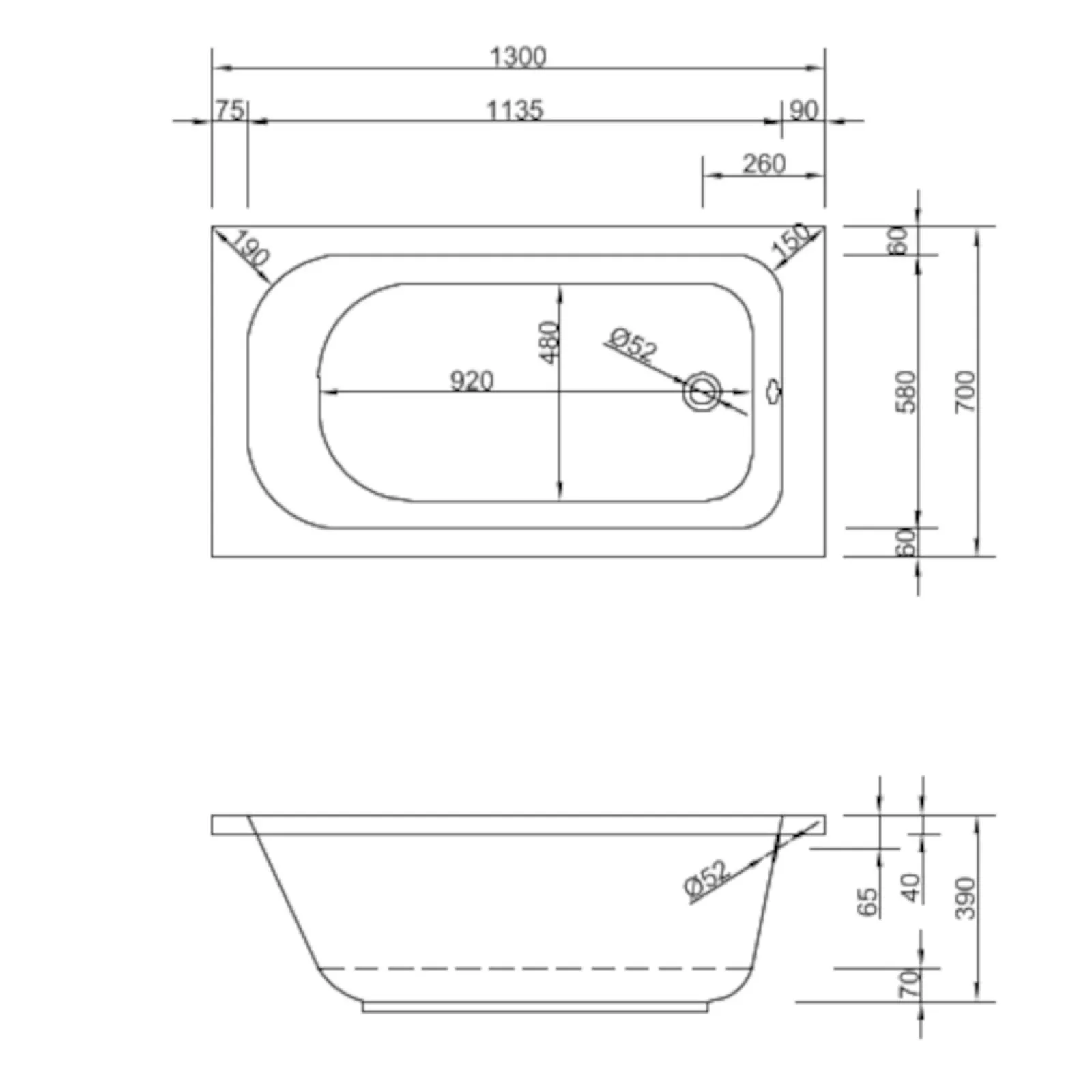 Herstellerangaben zum Produkt "Badewanne Korana P 120x70, 130x70 oder 140x70 cm"