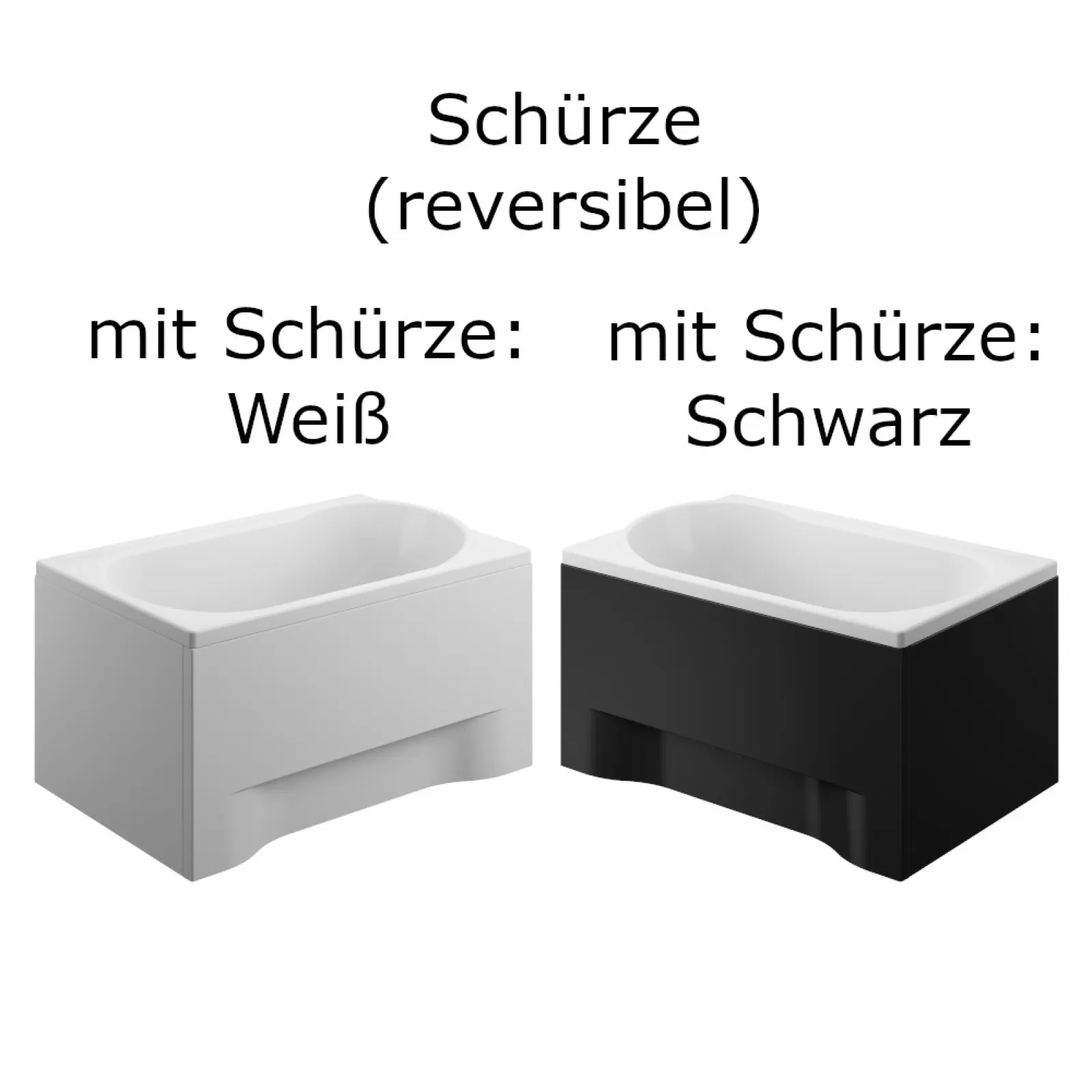 Die besonders kleine Rechteckbadewanne MINI eignet sich mit seinen Maßen auch für sehr kleine Bäder. Die Acrylbadewanne wird mit Wannenfüßen geliefert und kann optional mit verschiedenen Wannenschürzen in weiß oder schwarz ergänzt werden. Dabei können die Eckschürzen sowohl rechtsseitig, als auch linksseitig angebracht werden.
