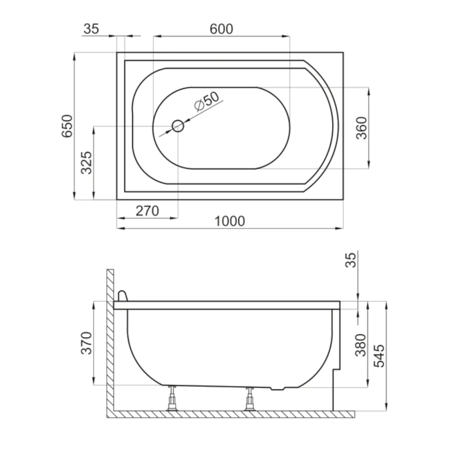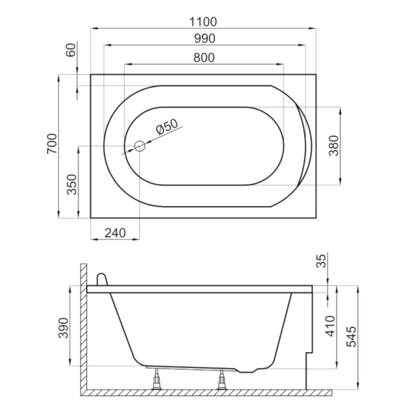 Herstellerangaben zum Produkt "Badewanne Mini 100x65 oder 110x70 cm "