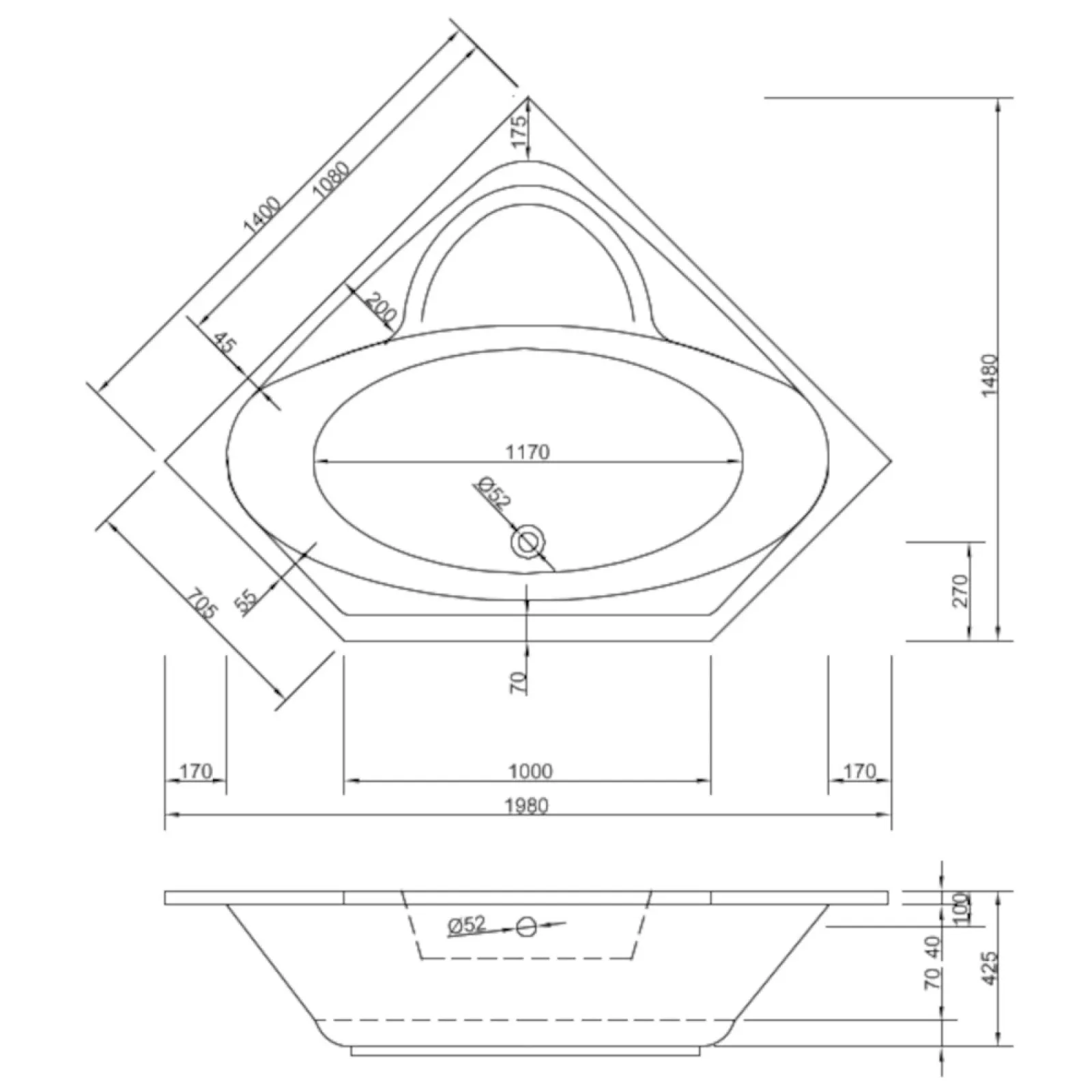 Produktinformationen "Badewanne Zypern 140x140 cm"