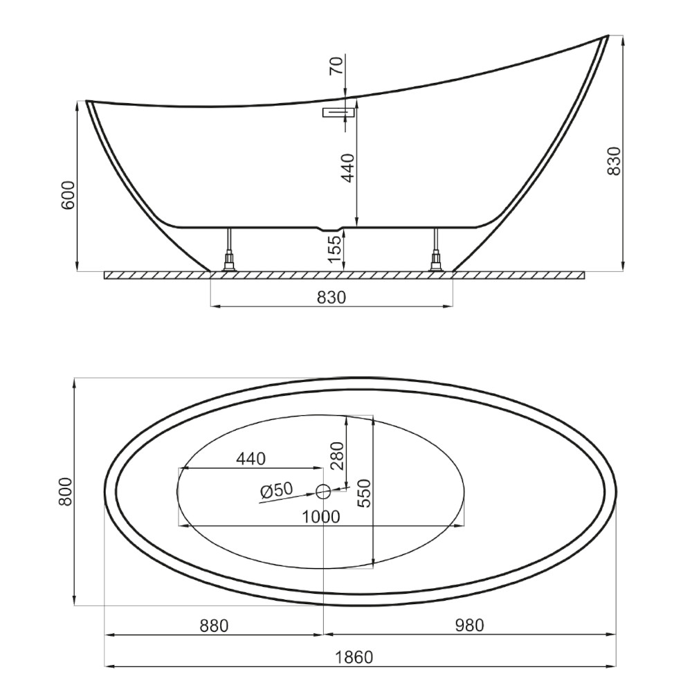 Herstellerangaben zum Produkt "Freistehende Badewanne ZOE 186x80 cm"